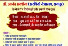 जैन दादा बाड़ी दल्लीराजहरा में विशाल निशुल्क नेत्र शिविर का आयोजन 20 जनवरी 2026 दिन मंगलवार को होगा।