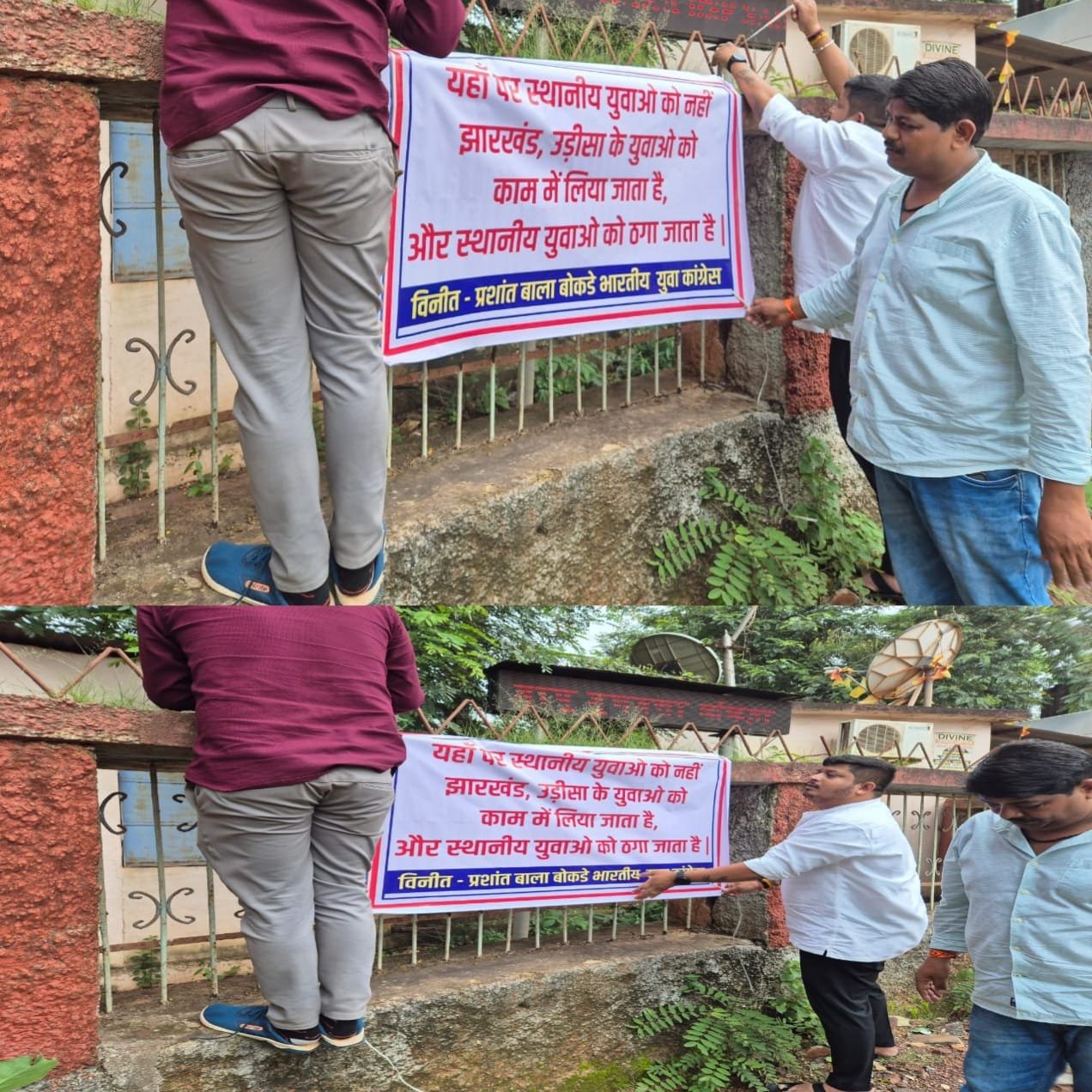 दल्लीराजहरा/ कांग्रेस नेता रवि जायसवाल व प्रशांत बोकडे के नेतृत्व में आज बीएसपी प्रशासन के खिलाफ बीएसपी के मेन गेट पर पोस्टर चिपका कर आरोप लगाया कि झारखंड ओडिशा के लोगों को यहां रोजगार दिया जाता है एवं स्थानिय यूवाओ को ठगा जाता है।बीएसपी प्रबंधन के द्वारा स्थानीय युवाओ के साथ दोहरी निति अपनाते हुए स्थानीय युवाओ के साथ छल किया जा रहा है।