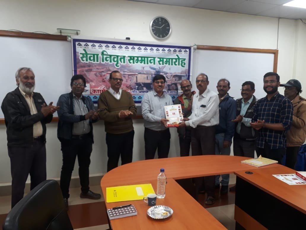 दल्लीराजहरा/ कार्मिक विभाग लौह अयस्क समूह दल्ली राजहरा के द्वारा मुख्य महाप्रबंधक सभागार में दिनांक 30.11.2024 को सेवानिवृत्ति सम्मान समारोह का आयोजन किया गया । कार्यक्रम के मुख्य अतिथि मुख्य महाप्रबंधक श्री आर बी गहरवार थे । कार्यक्रम में नवंबर मांह में सेवानिवृत हो रहे 07 कर्मचारियों को सेवानिवृत्ति प्रमाण पत्र एवं पुरस्कार वितरित किए गए। कार्यक्रम के मुख्य अतिथि श्री आर बी गहरवार ने भिलाई इस्पात संयंत्र और खान समूह को दी गई सेवाओं के लिए सेवानिवृत हो रहे कर्मचारी को धन्यवाद दिया एवं भिलाई इस्पात संयंत्र के उत्पादन में योगदान के लिए उनकी सराहना की ।कार्यक्रम में उपस्थित विशिष्ट अतिथि श्री विपिन कुमार महाप्रबंधक (अनुरक्षण एवं सेवाएं) ने सेवानिवृत कर्मचारी के स्वस्थ्य एवं सुखी जीवन के लिए शुभकामना दी ।कार्यक्रम में उपस्थित श्री जयप्रकाश महाप्रबंधक राजहरा ने सेवानिवृत कर्मचारियो के द्वारा कंपनी को दी गई बहुमूल्य सेवाओं के लिए धन्यवाद दिया । कार्यक्रम में उपस्थित यूनियन प्रतिनिधियों के द्वारा भी सेवानिवृत्ति कर्मचारियों को शुभकामनाएं एवं भविष्य में शारीरिक आर्थिक एवं पारिवारिक रूप से सुखमय जीवन व्यतीत करने की शुभकामनाएं दी गई । श्री शैलेश कुमार पटनायक, सहायक प्रबंधक कार्मिक विभाग ने सेवानिवृत कर्मचारियों को भविष्य में किसी भी प्रकार के सहयोग के लिए आश्वस्त किया ।संयुक्त खदान मजदूर संघ की ओर से उपस्थित श्री राजेंद्र बेहरा, बीएमएस यूनियन की ओर से श्री लखन लाल चौधरी, सीटू यूनियन की तरफ से श्री प्रकाश क्षत्रिय एवं इंटक यूनियन की ओर से उपस्थित श्री तिलक राम मानकर ने सेवानिवृत्ति पश्चात जीवन व्यतीत करने के तरीकों पर परामर्श दिया ।कार्यक्रम में सेवानिवृत्ति प्राप्त करने वाले कर्मचारियों में श्री सुरेश चंद्र सरकार श्री ईश्वर लाल निर्मलकर श्री मान सिंह नायक श्री यमन लाल देशमुख श्री तेमन सिंह ठाकुर श्री दशरथ लाल श्री महेश कुमार देशमुख उपस्थिति थे। कार्यक्रम का संचालन रतीश मिश्रा अतिरिक्त श्रम कल्याण अधिकारी ने किया एवं धन्यवाद ज्ञापन श्री आनंद कुमार कनिष्ठ प्रबंधक कार्मिक ने दिया ।