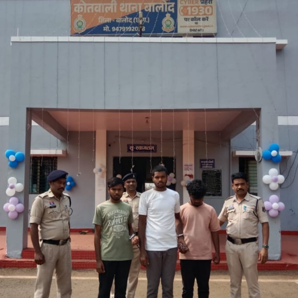 अपराध की गंभीरता को देखते हुए श्रीमान पुलिस अधीक्षक बालोद श्री योगेश कुमार पटेल के निर्देशन में, अतिरिक्त पुलिस अधीक्षक महोदया मोनिका ठाकुर के मार्गदर्शन में, श्रीमान अनुविभागीय अधिकारी पुलिस बोनीफास एक्का के पर्यवेक्षण में, थाना प्रभारी बालोद निरीक्षक शिशुपाल सिन्हा के नेतृत्व में थाना स्तर पर एक विशेष टीम तैयार कर आरोपीगण को प्रथम सूचना दर्ज करनें के चंद घंटो में घेराबंदी कर पकड़ा गया। तथा आरोपियों के कब्जे से मोटर सायकल, एक नग मोबाइल फोन व घटना में प्रयुक्त चाकू को जप्त किया गया है। आरोपियों को गिरफतार कर माननीय न्यायालय पेश कर दिनांक 21.03.2026 को न्यायिक रिमांड पर भेजा गया हैै।