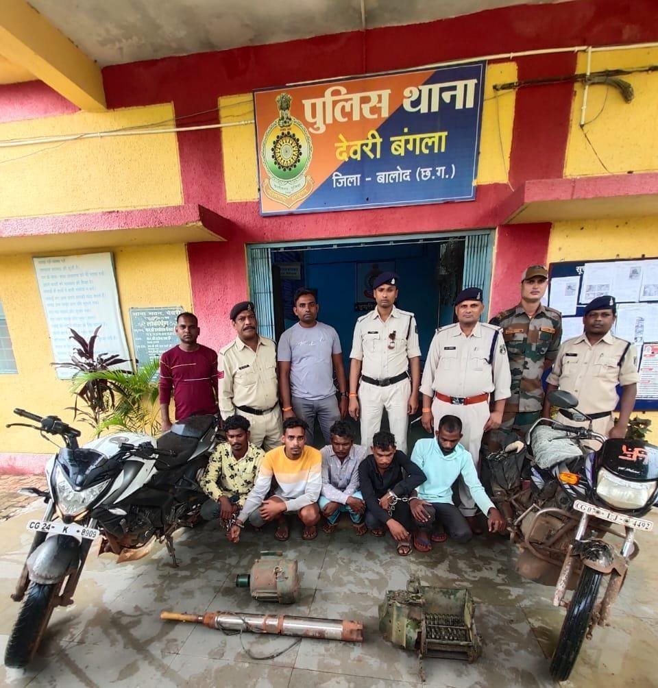 उक्त अपराध की सूचना वरिष्ठ अधिकारी को दिया गया। श्रीमान पुलिस अधीक्षक बालोद श्री एस.आर.भगत के निर्देशन में अतिरिक्त पुलिस अधीक्षक बालोद श्री अशोक कुमार जोशी के मार्गदर्शन, पुलिस अनुविभागीय अधिकारी बालोद श्री देवांश राठौर पर्यवेक्षण में, थाना इन्चार्ज देवरी सउनि अजित महोबिया के नेतृत्व में आरोपी की पता तलाश की जा रही थी, रात्रि गस्त के स्टाफ द्वारा बताया गया कि रात्रि में एक बाइक में दो लोग रोड में थे जिनका नाम पता और फोटो लिए हैं l टीम द्वारा दोनों संदेही से पूछताछ करने पर शुरुआत में घटना को अंजाम नहीं देना बताए लेकिन अलग अलग पूछने पर अपना अपराध कबूल करते हुए अन्य साथियो के साथ घटना कारित करना स्वीकार किए l विवेचना में त्वरित कार्यवाही कर आरोपी डिलेन्द्र ठाकुर, नरेन्द्र साहू, सोहन लाल राणा, सचिन मुनेन्द्र एवं बेदलाल उर्फ बेदू निषाद साकिनान सिंगारपुर, थाना सुरेगांव, जिला बालोद को अभिरक्षा में लेकर पूछताछ कर मेमोरेण्डम लिया गया। आरोपी द्वारा बताया गया कि दिनांक 05.08.2024 के 10.00 बजे ग्राम किसना के गौठान में गए और गौठान में चारा काटने का इलेक्ट्रानिक मशीन, गौठान में हुए बोर के अंदर से 01 एचपी का सबमर्सिबल मोटर पंप को निकाले। उसके बाद गौठान में बने कमरा का दरवाजा के हुक को तोड़कर कमरा अंदर जाकर हाल में रखा हुआ 03 नग कड़कनाथ मुर्गा को चोरी करके लाए उसके बाद हम सभी लोग मिलकर मोटर सायकल में ही सभी सामानो को लेकर ग्राम सिंगारपुर आए। चारा काटने का इलेक्ट्रानिक मशीन को सचिन मुनेन्द्र अपने पास रखा था और सोहन राणा ने 01 एचपी का सबमर्सिबल मोटर पंप को रखा था। ग्राम किसना के गौठान में बने कमरा के अंदर से चोरी किए कड़कनाथ मुर्गा को पार्टी मनाकर सभी लोग मिलकर खा लिए है। आरोपी नरेन्द्र साहु के कब्जे से घटना में प्रयुक्त मो.सा. हिरो होण्डा डिलक्स नीला रंग का क्रमांक सीजी 07 एलजे-4492 पुरानी इस्तेमाली की. 30000/रूपये, आरोपी सचिन मुनेन्द्र के कब्जे से चारा काटने का इलेक्ट्रानिक मशीन 02 गन कीमती करीब 22000/ रूपये, आरोपी डिलेन्द्र के पेश करने पर एक सफेद रंग का पल्सर क्रमांक सीजी 24 के 8909 की. 75000/रूपये, आरोपी सोहन लाल राणा के पेश करने पर एक सबमर्सिबल पम्प की. 10000/ रूपये को मुताबिक जप्ती पत्रक गवाहो के समक्ष जप्त किया गया है। आरोपीगण का कृत्य धारा सदर का अपराध घटित करना पाये जाने से आज दिनांक 08.08.2024 को विधिवत् गिरफ्तार किया जाकर माननीय न्यायालय न्यायिक रिमाण्ड पर भेजा गया है।