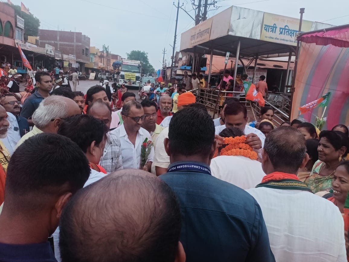 समिति के अध्यक्ष अजय अग्रवाल सहित समस्त पदाधिकारियों एवं क्षेत्र की महिलाओं एवं पुरुषों के द्वारा सांसद भोजराज नाग को पुष्प हार पहना कर एवं पुष्प गुच्छ भेंट किया गया। महिलाओं के द्वारा सांसद भोजराज की आरती कर उन्हे तिलक लगाया।