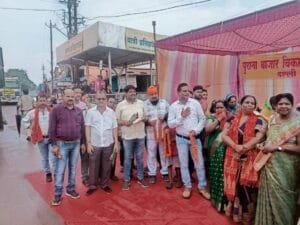 नवनिर्वाचित सांसद भोजराज नाग के प्रथम आगमन पर पुराना बाजार विकास एवं संघर्ष समिति ने भव्य स्वागत किया महिलाओं ने उतारी आरती
