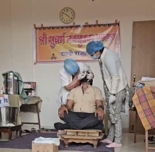 शिविर में राजकोट ( गुजरात ) निवासी आयुर्वेदिक दंत वैद्या डॉक्टर सरोजबेन जोशी एवं डा.चेस्टा साहू द्वारा मरीजों के दांतों की जांच कर उचित परामर्श दिया साथ ही साथ सड़े गले दांतो को ( आयुर्वैदिक जालंधर बंध योग प्रक्रिया द्वारा ) बिना दर्द के इंजेक्शन के आसानी से दांत निकाले गये। ब्लड प्रेशर एवं शुगर के मरीजों का टेस्ट कर के ही दांत निकाला गया। लोग इनके दांत निकलने की प्रक्रिया को देख आश्चर्य चकित हो रहे थे। किसी ने 1 किसी ने 2 किसी ने 3 दांत निकले। दांत निकलने के बाद गरम पानी से कुल्ला करवा कर निःशुल्क् दवाई भी दिया गया ।