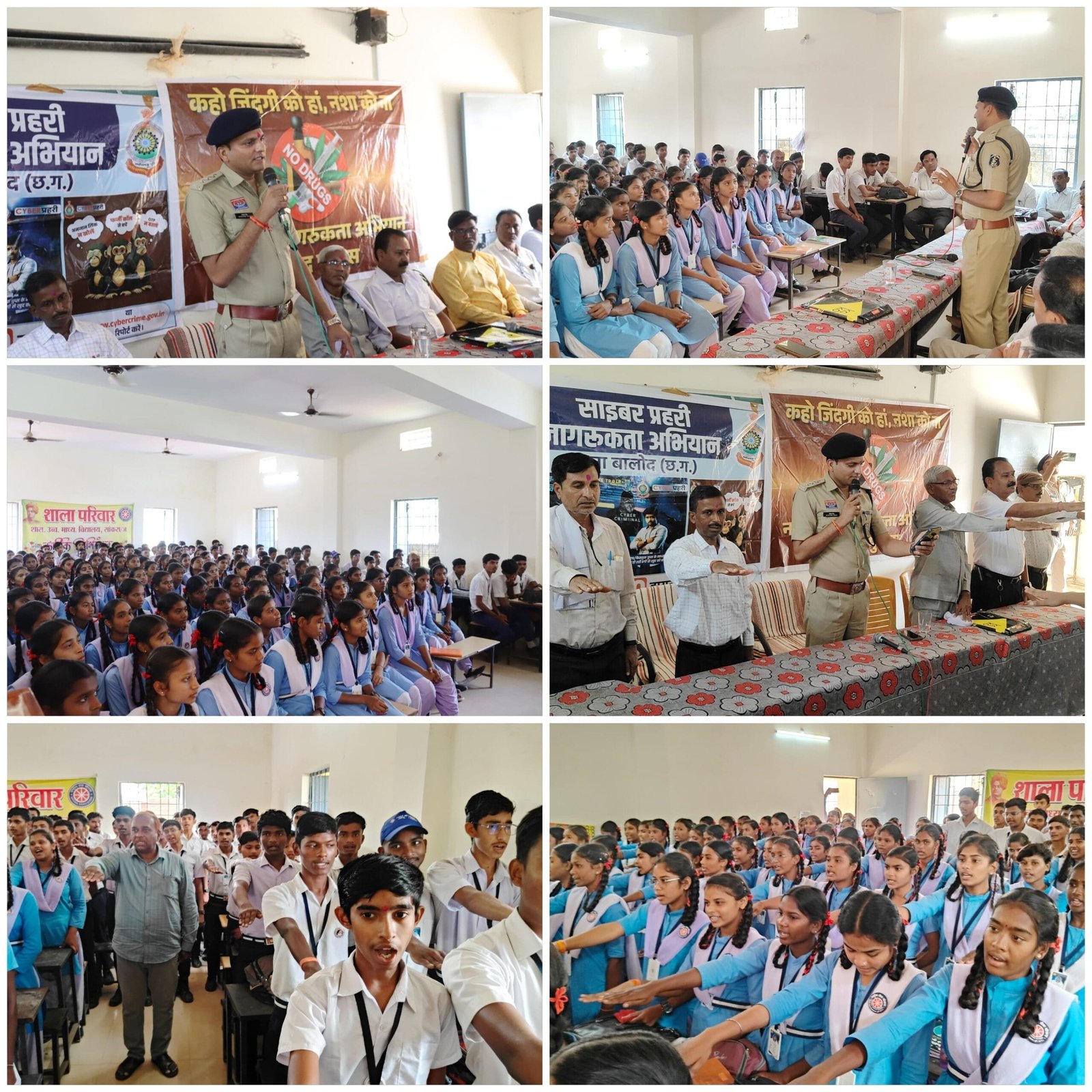 बालोद/ दिनांक 14/10/2025 को पुलिस अधीक्षक बालोद श्री योगेश कुमार पटेल के कुशल नेतृत्व एवं दिशा-निर्देशन में एवं अति. पुलिस अधीक्षक श्रीमती मोनिका ठाकुर के मार्गदर्शन में , एसडीओपी देवांश सिंह राठौर के पर्यवेक्षण में बालोद पुलिस द्वारा जिले में निरंतर साइबर सुरक्षा, नशामुक्ति एवं यातायात जागरूकता कार्यक्रम आयोजित किए जा रहे हैं।