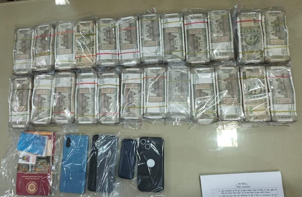 1. सोनू कुमार पिता रविभूषण भूमियार उम्र 19 साल पता ग्राम महरत थाना शाहपुर जिला नवादा बिहार। जप्त मशरूका 24 लाख (नगदी चौबीस लाख रूपये), 03 नग मोबाईल किमती 1 लाख कुल जप्त मशरूका 25 लाख।
