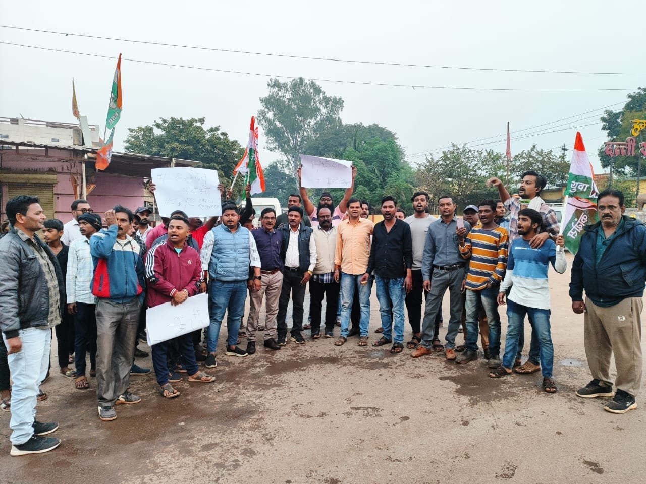 सरगुजा संभाग के हसदेव अभ्यारण में कोयला खनन कर प्रधानमंत्री के चर्चित करीबी अडानी को फायदा पहुंचाने के लक्ष्य से पेड़ों की अंधाधुन कटाई के खिलाफ छत्तीसगढ़ प्रदेश युवा कांग्रेस के अध्यक्ष आकाश शर्मा के आव्हान पर , जिलाध्यक्ष प्रशांत बोकडे के निर्देशानुसार दल्ली राजहरा युवा कांग्रेस अध्यक्ष परितोष हंसपाल के नेतृत्व में बड़ी संख्या में युवाओं , इंटक यूनियन कार्यकर्ताओं , पार्षदों एवम कांग्रेसजनों ने बड़ी संख्या में उपस्थित हो कर मुख्यमंत्री विष्णु देव साय का पुतला दहन कर विरोध में अपनी आवाज़ सशक्त की ।