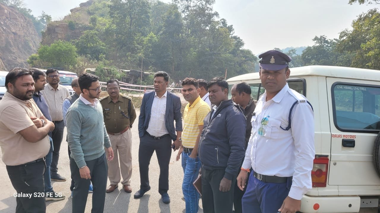 मरकाटोला घाटी के पास घटित सड़क दुर्घटना के मद्देनजर संयुक्त टीम (एनएचआई/पुलिस/परिवहन) द्वारा घटनास्थल का किया गया निरीक्षण