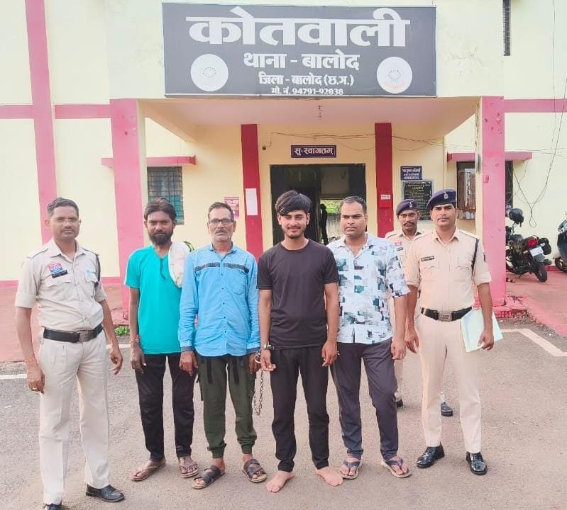 दिनांक 02.10.2025 को जरिये मुखबीर सूचना मिला कि त्रिलोक गौतम निवासी मालीघोरी द्वारा अपने घर में शुष्क दिवस गांधी जयंती एवं आसपास के ग्रामों में दशहरा पर्व को देखते हुए अवैध रूप से धन लाभ अर्जित करने के लिए अधिक मात्रा में शराब अपने घर में रखकर अवैध रूप से अपने पुत्र खिलेश गौतम एवं सहयोगी संतोष टंडन, कालू उर्फ राहुल अग्रवाल, एवं अन्य के साथ मिलकर बिक्री कर रहा है कि सूचना पर तस्दीक पर रेड कार्यवाही दौरान आरोपी त्रिलोक गौतम के मकान के तलाशी लेने पर 04 नग प्लास्टिक के थैला में कुल 498 पौवा देशी प्लेन शराब कुल मात्रा 89.460 बल्क लीटर कीमती 39,760/-रूपये की शराब को गवाहों के समक्ष आरोपी त्रिलोक गौतम से बरामद कर जप्त किया जाकर मौके पर सील बंद कार्यवाही कर आरोपी त्रिलोक गौतम एवं खिलेश गौतम को अभिरक्षा में साथ लाकर पुछताछ करने पर दोनो ने बताया कि मालीघोरी के नजदीक जंगल में जगह बदल बदल कर शराब बिक्री का काम कर रहे हैं जिनके साथ अवैध रूप से शराब बिक्री एवं परिवहन करने में सहयोगी संतोष टंडन, कालू राम उर्फ राहुल अग्रवाल एवं विधि से संघर्षरत् बालक भी शामिल हैं। दिनांक 02.10.2025 मई को शुष्क दिवस पर शराब दुकान बंद होने एवं आसपास के ग्रामों में दशहरा कार्यक्रम होने से विगत एक सप्ताह से आरोपी त्रिलोक गौतम, खिलेश गौतम, संतोष टंडन, कालू राम एवं विधि से संघर्षरत बालक सभी मिलकर शराब दुकान से शराब खरीदकर लाकर आरोपी त्रिलोक गौतम के घर में इकट्ठा करना एवं शराब परिवहन के लिए कार क्रमांक सीजी 07-0709 एवं स्कूटी क्रमांक सीजी 05 एसी 9017 का उपयोग करना बताये। कार क्रमांक सीजी 07-0709 को आरोपी त्रिलोक गौतम से एवं स्कूटी क्रमांक सीजी 05 एसी 9017 व शराब बिक्री रकम 2150/-रूपये को आरोपी खिलेश गौतम के कब्जे से जप्त किया गया। आरोपी त्रिलोक गौतम, खिलेश गौतम, संतोष टंडन, कालू राम उर्फ राहुल अग्रवाल एवं विधि से संघर्षरत बालक का कृत्य धारा अपराध का घटित करना पाये जाने से एंड टू एंड विवेचना करते हुए थाना बालोद में अपराध क्रमांक 415/2025 धारा 34(2) आबकारी एक्ट पंजीबध्द कर आरोपीगणों को दिनांक 03.10.2025 के गिरफ्तार कर माननीय न्यायालय के समक्ष पेश कर न्यायिक रिमांड पर बालोद जेल निरूध्द किया गया है।