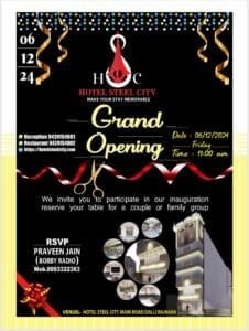 लौह अयस्क नगरी दल्लीराजहरा में 6 दिसम्बर 2024 को होटल स्टील सिटी का होगा भव्य शुभारंभ