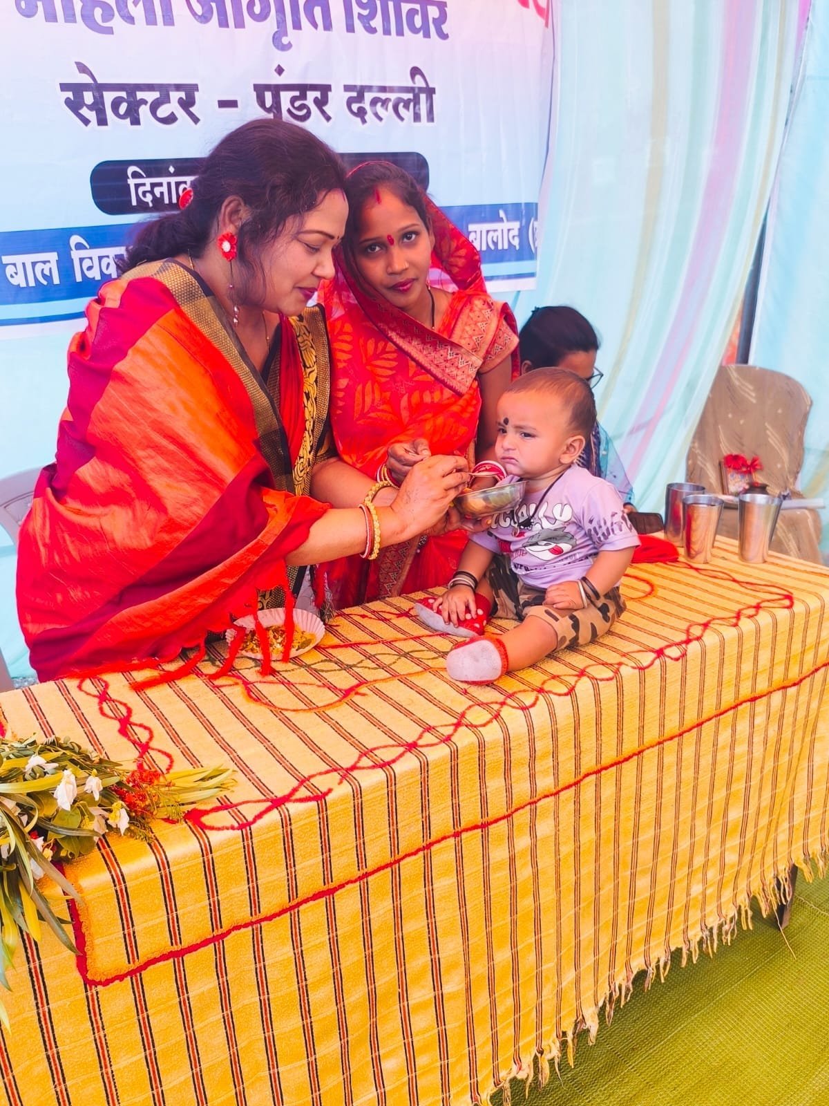 वार्ड नंबर दो आजाद नगर वार्ड में महिला एवं बाल विकास विभाग द्वारा गोद भराई एवं अन्नप्राशन संस्कार का आयोजन।