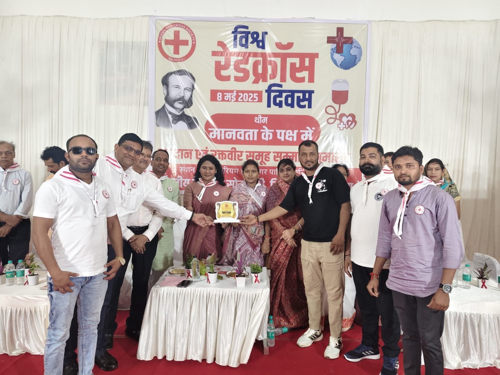 विश्व रेडक्रॉस दिवस पर रेड क्रॉस सोसायटी ने नगर की सेवा के क्षेत्र में अग्रणी संस्था डोनेट ब्लड डीबी ग्रुप का सम्मान किया गया।