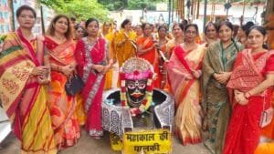 शिव संस्कार धाम से झरन मंदिर तक कावड़ यात्रा में महादेव की पालकी उठाने उमड़ी शिव भक्तों की भीड़।