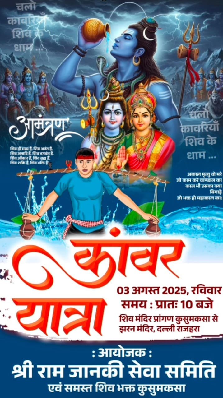 श्री राम जानकी सेवा समिति कुसुमकसा से कल पदयात्रा करते हुए जल लेने पहुँचेगे माँ झरन मैय्या मंदिर।