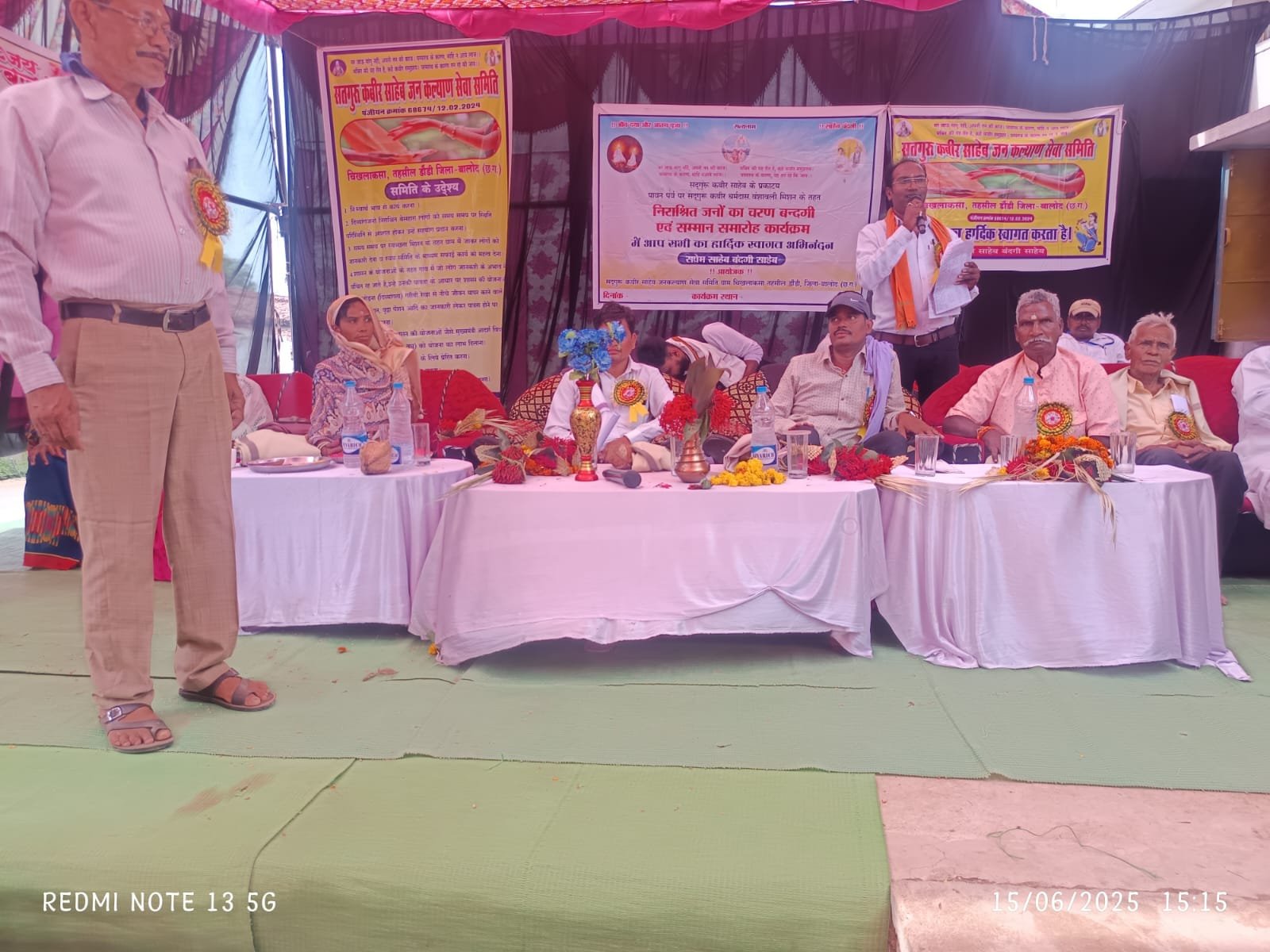 केडीवी मिशन के तहत निराश्रित जनों के कार्यक्रम में विधायक प्रतिनिधि श्री पीयूष सोनी जी,जिलापंचायत सदस्य सुश्री नीलिमा श्याम जी,जनपद सदस्य कुलदीप साहू जी ग्राम पंचायत साल्हे के सरपंच संगीता नेताम जी समाज सेवक विरेन्द्र तारम जी तथा समिति के पदाधिकारी गण दयादास मानिकपुरी अध्यक्ष,घनश्यामदास मानिकपुरी सचिव,कृष्णदास मानिकपुरी कोषाध्यक्ष,दुर्गादास मानिकपुरी सहसचिव, गोविंददास मानिकपुरी, बलदेवदास मानिकपुरी राकेशदास मानिकपुरी मोनिका मानिकपुरी सेवती मानिकपुरी लता मानिकपुरी पुष्पा मानिकपुरी ग्राम के बजरंग मानसमंडली के सदस्य, महिला स्वासहायता.समूह के सदस्य रामधुनी पार्टी के सदस्य, समस्त पंचायत के प्रतिनिधि गण एवं ग्रामीण जन समुदाय उपस्थित थे। इस कार्यक्रम को सफल आयोजन में मोचन साहू,अमित निर्मलकर,डोमार साहू,भगवन्तीन निर्मलकर, तोरण निर्मलकर शेखर कचलाम मानसिंह साहू रुपलाल निर्मलकर,एवं रुपलाल साहू का महत्वपूर्ण योगदान रहा।