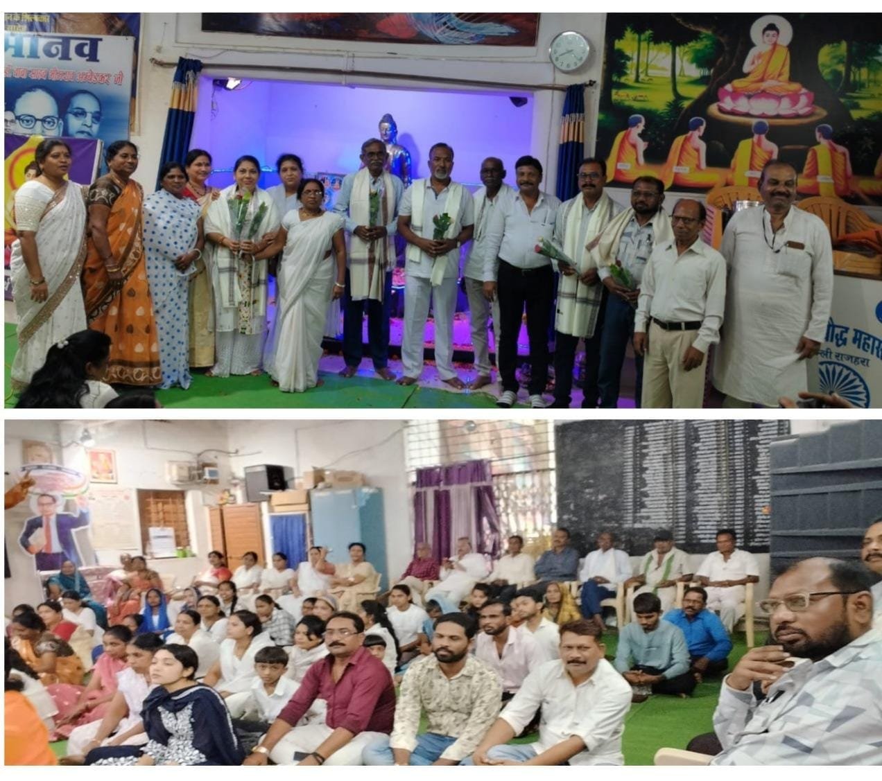 धम्मपद का वाचन भीम राव मेश्राम के द्वारा किया गया और ध्यान साधना का अभ्यास अजय रामटेके के द्वारा कराया गया।