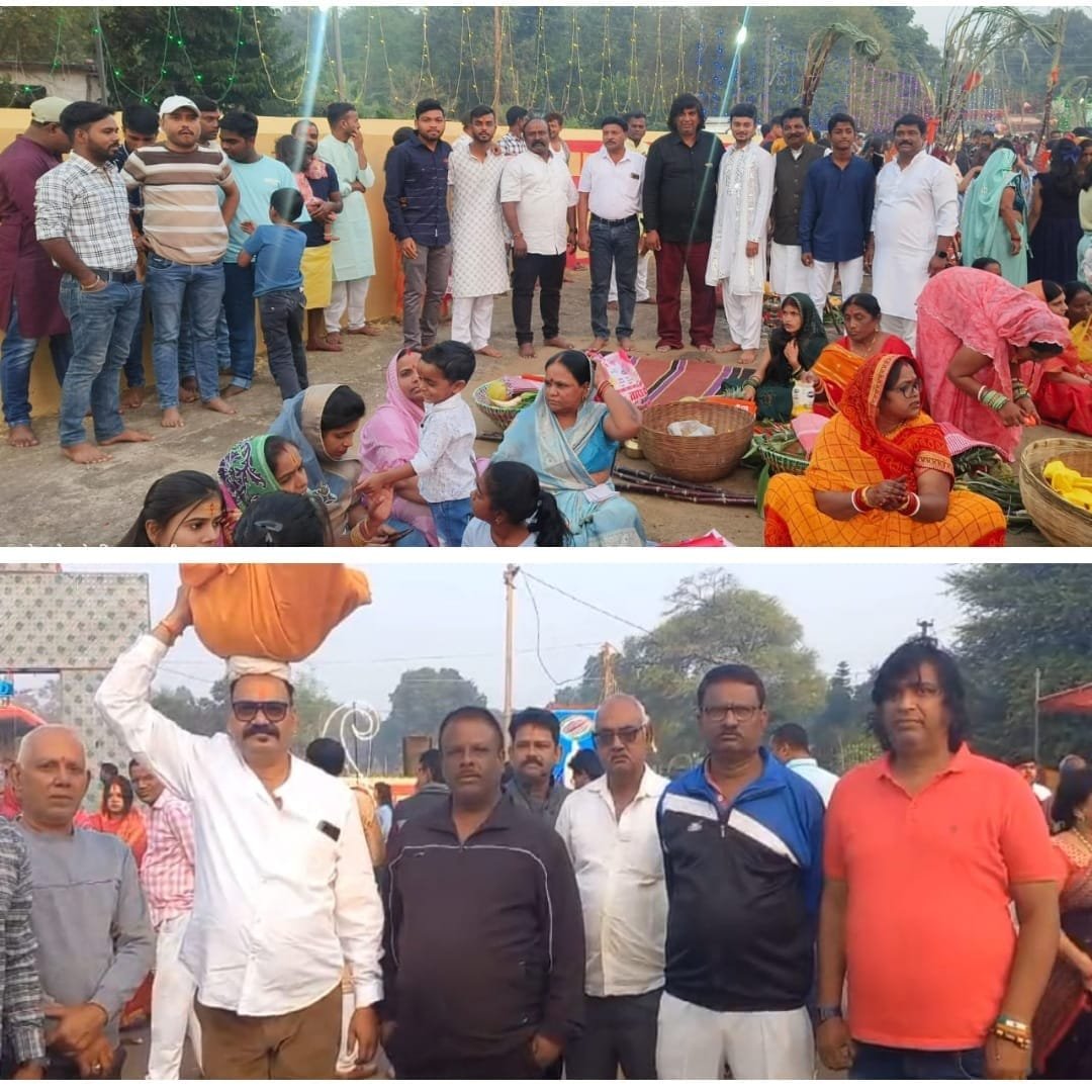 साथ ही ब्लॉक कांग्रेस कमेटी के महामंत्री सुरेश ठाकुर के निमंत्रण पर उनके परिवार जनों के साथ छठ आरती में सम्मिलित हुए।