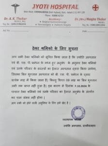 दल्लीराजहरा/ बीएसपी प्रबंधन के द्वारा माइंस में कार्यरत ठेका श्रमिको के जीवन के साथ किया जा रहा हैं खिलवाड़ माइंस क्षेत्र में कार्य करने वाले ठेका श्रमिको को चिकित्सा सुविधा कराने को लेकर स्थानीय शहीद हॉस्पिटल एवम ज्योति हॉस्पिटल के साथ अनुबंध किया गया था किन्तु पिछले आठ नौ माह से उक्त चिकित्सा संसाधनों का भुगतान नहीं किए जाने के कारण उक्त संसाधनों द्वारा उक्त ठेका श्रमिको की चिकित्सा सुविधा बंद कर दिया गया हैं । बीएसपी प्रबंधन की इस तरह की ठेका श्रमिको की सुविधा के साथ अनदेखी प्रबंधन द्वारा श्रमिको का शोषण किया जाना सदैव अनुचित हैं बीएसपी प्रबंधन द्वारा माइंस क्षेत्र में कार्यरत ठेका श्रमिको के साथ सौतेला व्यवहार किया जाता हैं ।
