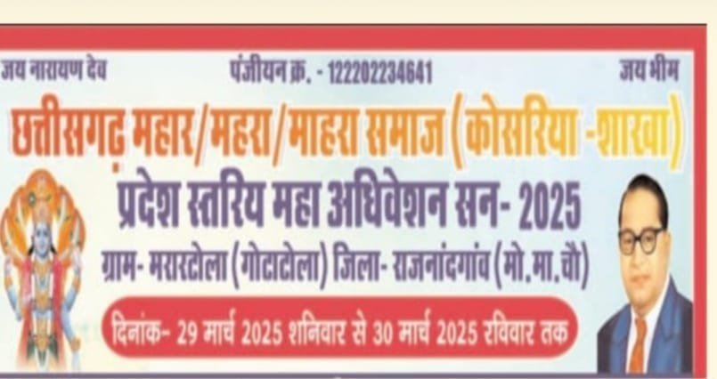 छत्तीसगढ़ महार/महरा/माहरा समाज का प्रदेश स्तरीय महाधिवेशन 29 व 30 मार्च को ग्राम मरारटोला में संपन्न होगा।