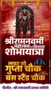 राम नवमी उत्सव समिति के संयोजक विशाल मोटवानी ने बताया की राम नवमी उत्सव समिति के तत्वाधान मे हर वर्ष की भांति इस वर्ष भी राम नवमी के पावन अवसर पर आज दिनाँक 7-4-2025 को संध्या 4 बजे भगवान श्री राम जी की भव्य शोभायात्रा वार्ड क्रमांक 13 घोड़ा मंदिर से निकाली जाएगी जिसमे विभिन्न प्रांतो की झाँकिया बालाघाट मध्यप्रदेश का अघोरी नृत्य नाशिक महाराष्ट्र से शिव डमरू रथ पे सवार राम लक्ष्मण सीता जी की जिवंत झाँकिया छत्तीसगढ़ की प्रसिद्ध काली माई दुर्ग की प्रसिद्ध नवदुर्गा रूप बस्तर का प्रसिद्ध मांदरी बालोद जिले का पसिद्ध अखाडा छत्तीसगढ़ का प्रसिद्ध डी जे पावर जोन बिलासपुर का प्रसिद्ध डी जे अक्की एन्ड सन लाइट ग्रुप नांदगाव का प्रसिद्ध स्पॉट लाइट एवं कुणाल डीजे बस स्टैंड चौक मे दल्ली से ट्रस लेजर लाइट एवं डीजे के साथ गुप्ता चौक मे अजय डीजे रंग बिरंगी आतिशबाजी के साथ और भी विभिन्न प्रकार की झंकियों के साथ मनेगा।