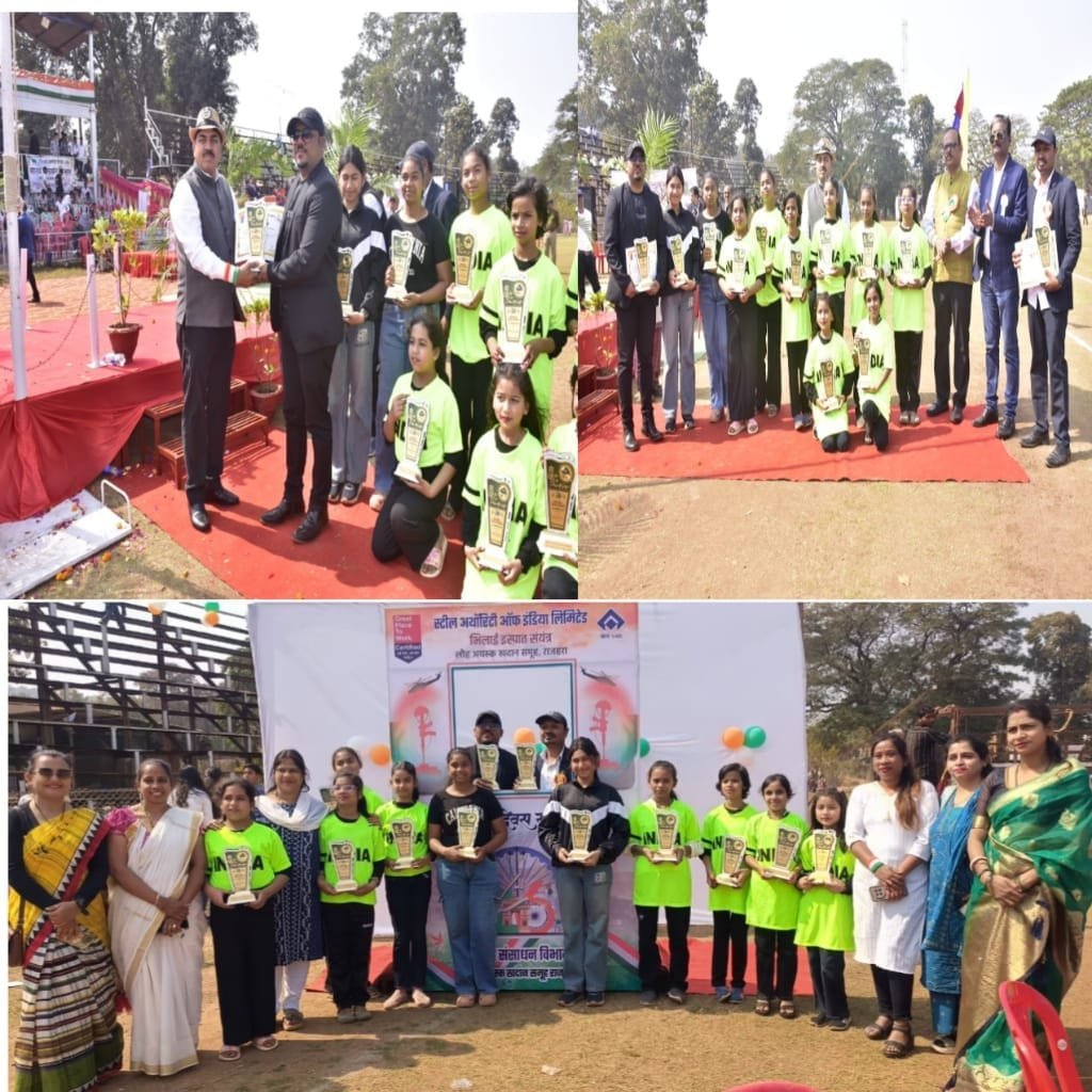 दल्लीराजहरा। दल्लीराजहरा BSP राजहरा माइंस द्वारा गणतंत्र दिवस 26 जनवरी 2026 के अवसर पर राष्ट्रीय नृत्य प्रतियोगिता के विजेताओं को सम्मानित किया गया। यह सम्मान समारोह दल्लीराजहरा फुटबॉल ग्राउंड में आयोजित गणतंत्र दिवस में जहाँ RB गहरवार सर (CGM, BSP दल्लीराजहरा माइंस) के कर-कमलों से दल्लीराजहरा की लोह नगरी का लगातार नाम रोशन करने के लिए Dalli Modern Art Club (D-MAC) को प्रमाण पत्र एवं ट्रॉफी प्रदान कर सम्मानित किया गया।